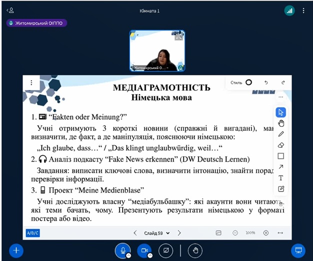 Тема заходу: Медіаграмотність 360º: кейси для вчителів німецької мови.